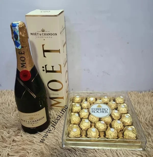 Combine the luxury of Moet and Chandon with a package of 24 Ferrero Rocher chocolates. Ideal for various occasions such as birthdays, love and romance, get well soon, Mother’s Day, congratulations, apologies, anniversaries, and Valentine’s Day. Order this perfect combination online for fresh flower delivery in Nairobi, catering to Valentine’s Day, Mother’s Day, birthdays, and more.